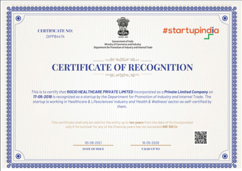 Rocio Healthcare Pvt. Ltd. incorporated as a Private Limited Company on 17-05-2018. It is recognized as a startup by the Department for Promotion of Industry and Internal Trade. The startup is working in 'Healthcare & Lifesciences' industry and 'Health & Welness' sector as self-certified by them.